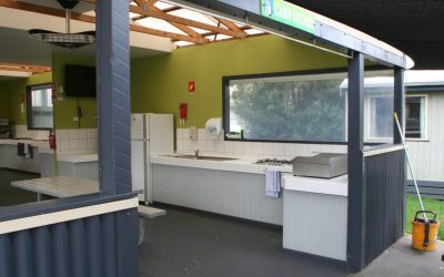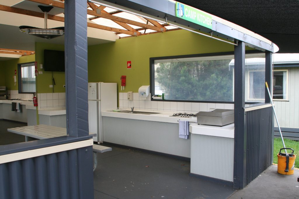 The large, modern camp kitchen is immaculate and equipped with a large oven, tables, bench space and two large fridges. A school group easily managed to cook their meal during our stay.