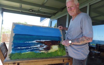 We caught Tony Roach part-way through a scenic masterpiece painted from the Ocean View cabin’s balcony. Tony says he stays here regularly for the views, peace and quiet and the friendly staff.