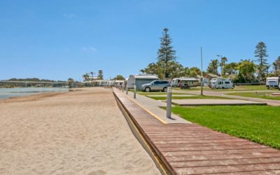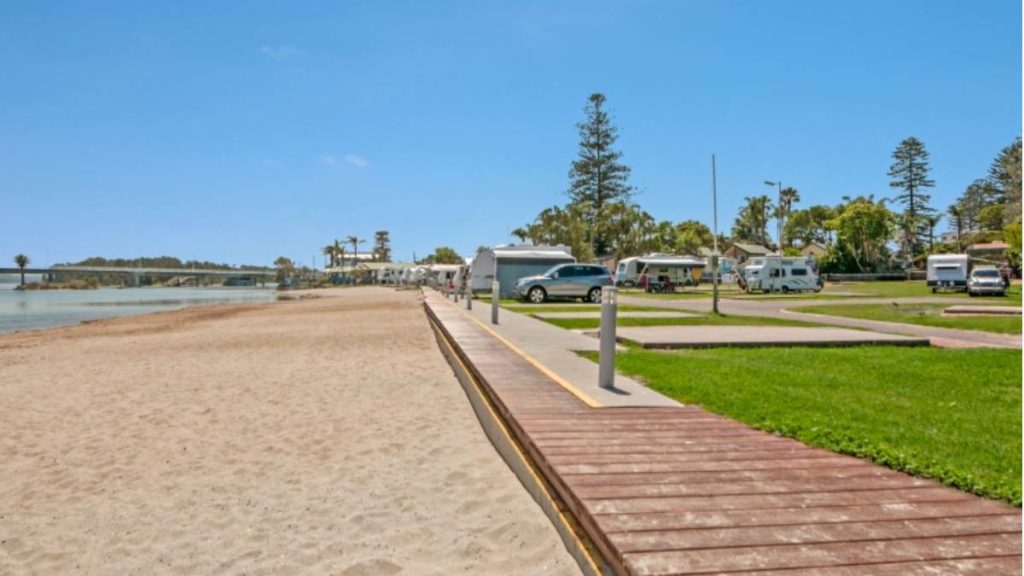 Centrally located near shops, restaurants, clubs, beaches and great fishing and prawning. A beautiful sandy beach right in front of our waterfront sites for all our guests to enjoy.