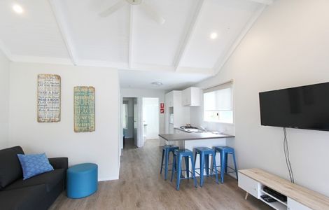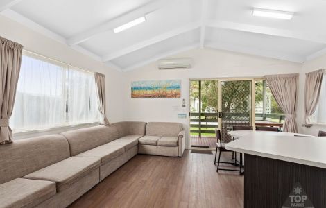 The park offers large shaded grassy Powered and Unpowered sites; 3 bedroom Family Cabin, BeachView, BalconyView & ParkView Cabins. There is a Camp Kitchen, undercover electric BBQ’s, Childrens play ground, Babies/Disabled facilities and Kiosk.