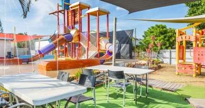 * Fun water park with water slides and tipping bucket