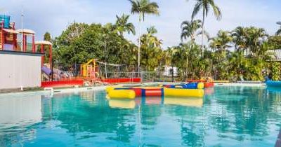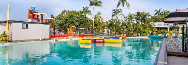 * Huge saltwater swimming pool with giant inflatable toys