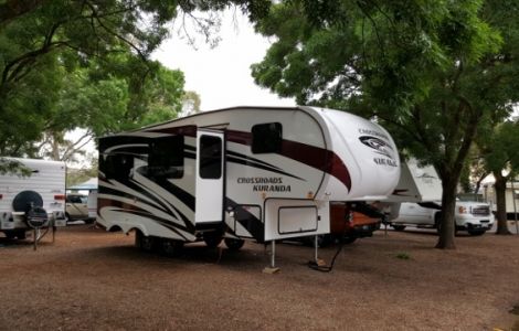 We have shady sites all with individual services and lawned camping sites overlooking the River Torrens.