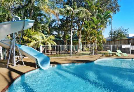 The recreation area with large pool, water-slide, sun lounges, playground, camp kitchen – television room with Foxtel and all weather barbecue facilities, is the place to catch up with old or make new friends on your Port Macquarie Holiday.