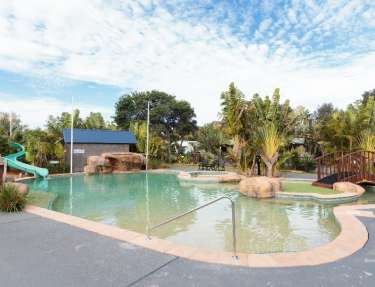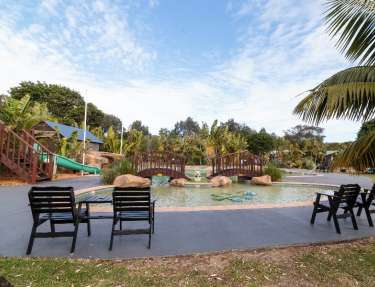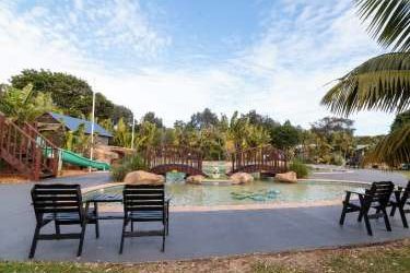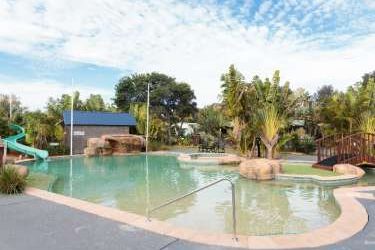 The park is a 20 minute drive from Old Bar, a 30 minute drive from Taree and an hour south of Port Macquarie. Facilities at Easts Ocean Shores include a resort style pool, children’s playground, jumping pillow, BBQ facilities, a shared guest camp kitchen and parking outside your site or cabin.