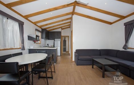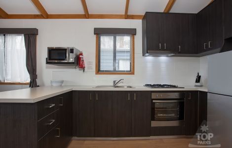 Portland Tourist Parks Superior Cabins, Holiday Units and Cabins are extremely spacious with each having reverse cycle air conditioning, two bedrooms, a large lounge area, separate bathroom and a fully self contained kitchen. In addition to the cabin accommodation the park offers 16 ensuite sites for caravans, 40 powered sites and numerous unpowered sites. The park also has limited large annual sites available. The park facilities include a large camp kitchen and a kids playground providing an opportunity for all guests at the Tourist Park to mingle with fellow travellers. Portland has become a must visit destination for the keen fisherman and the Tourist Park is the ideal place to stay. Apart from having a boat wash and the camp kitchen the park also has ample room beside each site for boats to be conveniently parked with in the owners view and a freezer located in the camp kitchen for the big catch. All cabins have 2 bedrooms. Corporate and extended stay rates available. Small pets allowed at Manager’s discretion.
