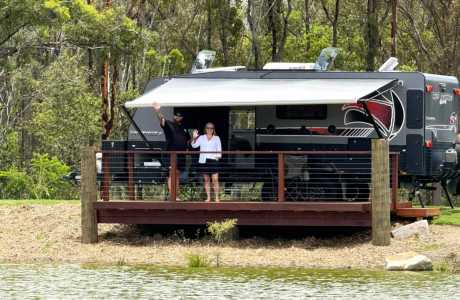 The park features unpowered sites (powered sites coming late 2025), tiny home accommodation, and scenic deck sites overlooking the dams. Facilities include a bar, pizza oven, firepits, and a modern amenities block. There is also Macca’s Pavilion which has been set up for your entertainment and at times accommodates live music. Whether you’re enjoying quiet moments in nature or gathering around the fire, Wide Bay Getaway offers the perfect balance of comfort and rustic charm.